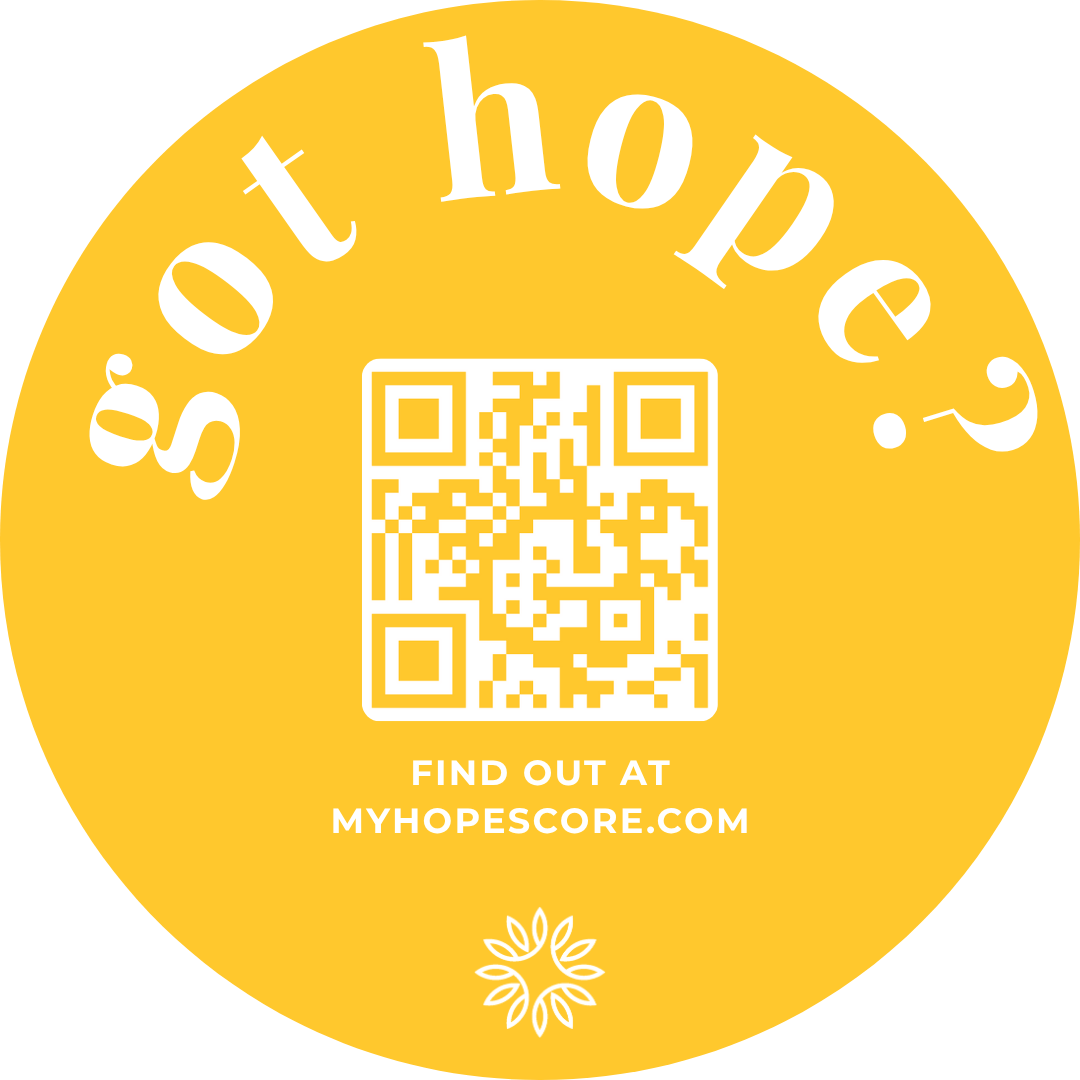 We are glad you are here. The My Hope Score is a simple tool to help you see where you are on your Hope journey today. Your score is not a label, it is a snapshot, and just like physical health, it will rise and fall over time. That is normal.